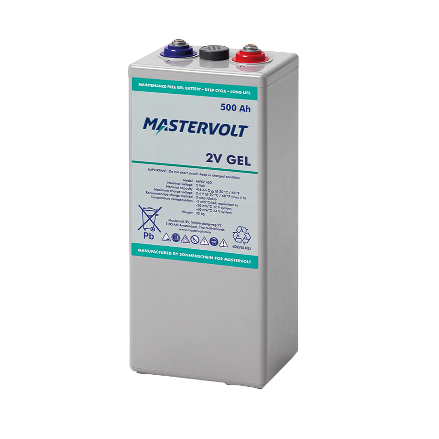 Dòng traction battery 2V của Mastervolt có dung lượng lên đến 2700 Ah, và có thể ghép nối 6 hoặc 12 bình để tạo hệ điện 12V hoặc 24V theo đúng yêu cầu tải. Cáp kết nối đã bao gồm trong bộ sản phẩm (khách hàng chỉ cần chọn chiều dài mong muốn khi đặt hàng).