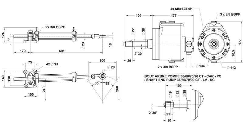– Thành phần tiêu chuẩn: Bộ kít bao gồm đầy đủ các thành phần như bơm lái, xi-lanh thủy lực, ống dẫn và phụ kiện kết nối.