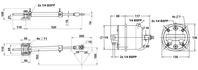 – Thành phần tiêu chuẩn: Bộ kít bao gồm đầy đủ các thành phần như bơm lái, xi-lanh thủy lực, ống dẫn và phụ kiện kết nối.