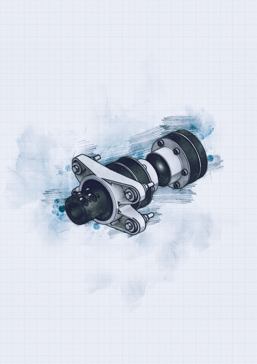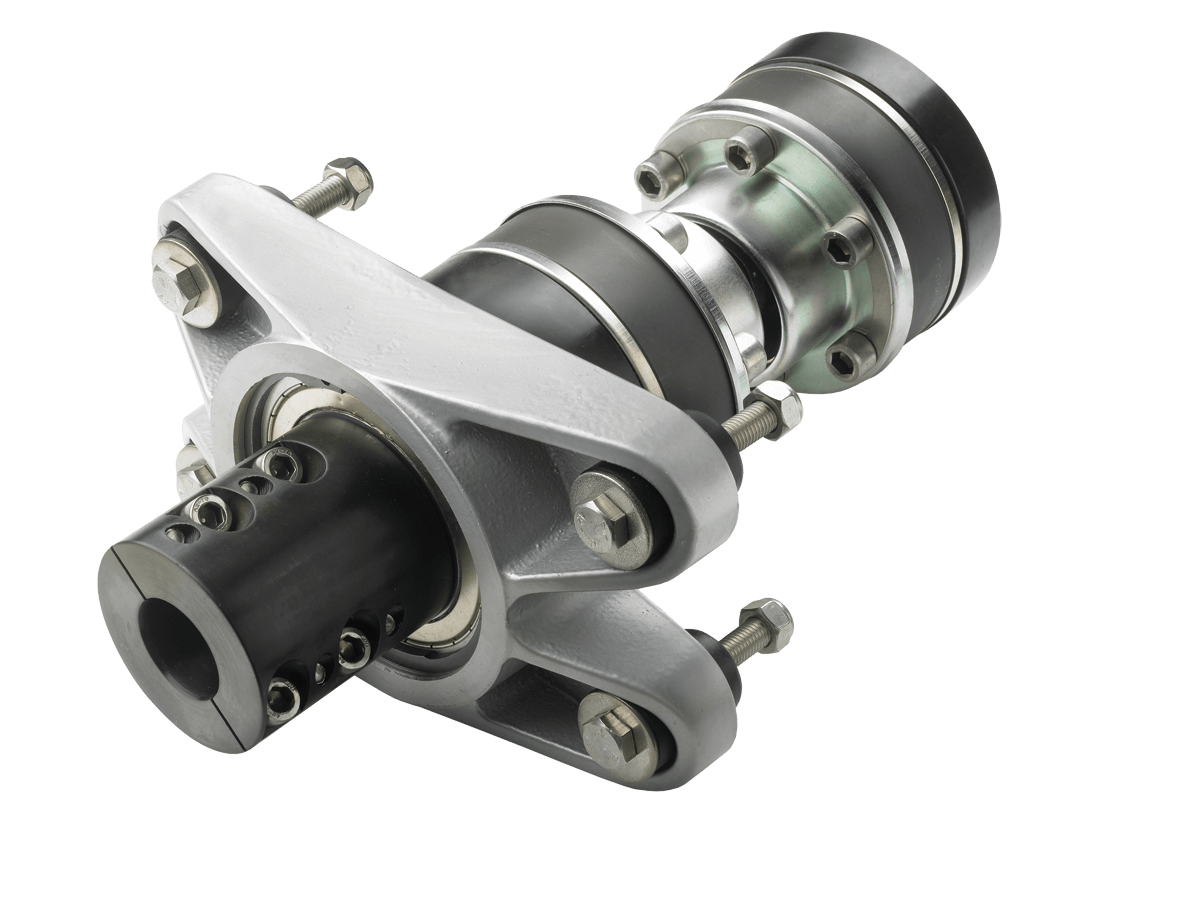 Khớp nối mềm trục láp chân vịt Vetus Drive là sự kết hợp giữa bộ giảm chấn dọc trục và khớp nối gãy khúc (velocity joint).